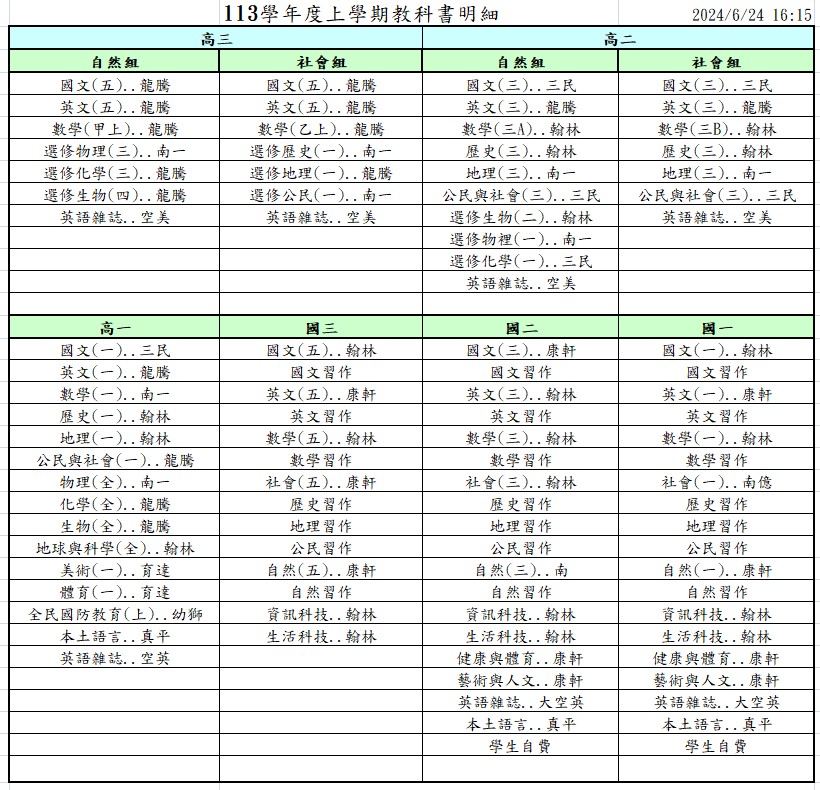 > 學生服務專區 > 113學年教科書版本
