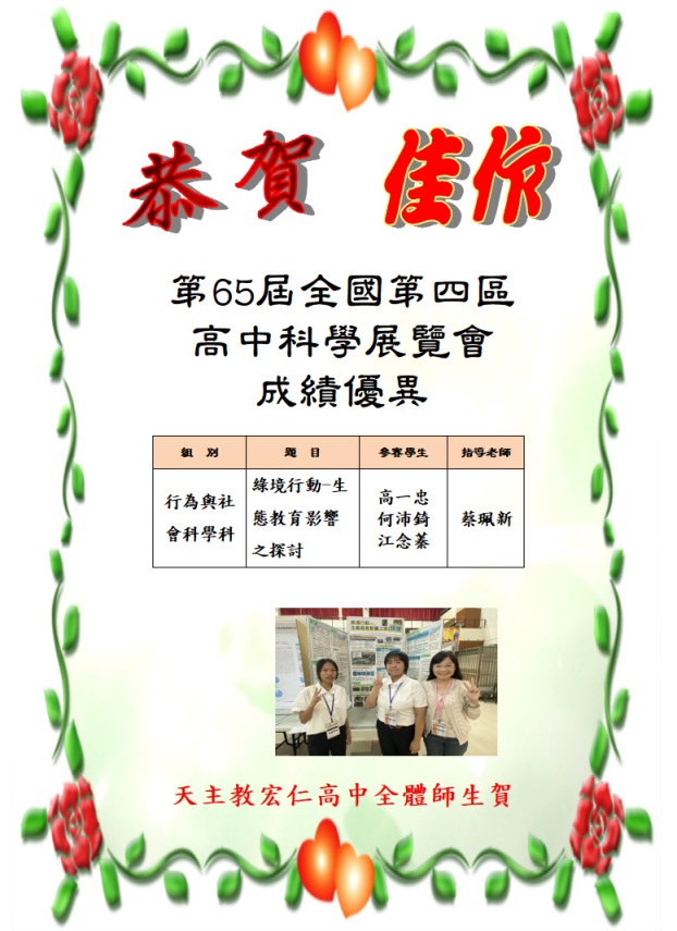 賀!本校師生參加第65屆第4區科學展覽表現優異。